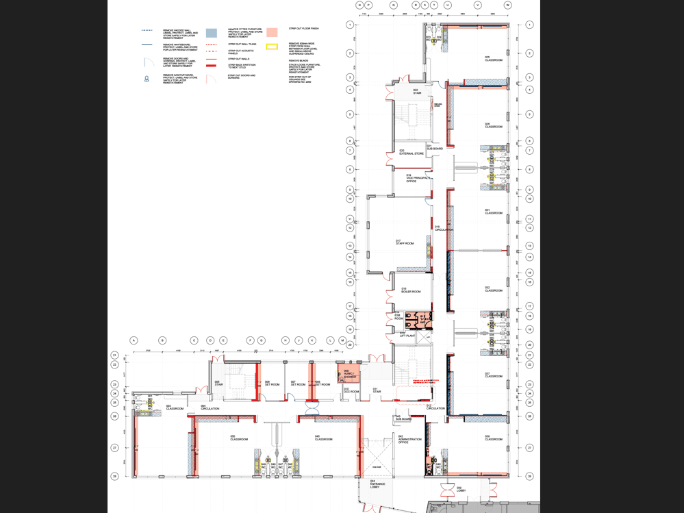 This multi-site project focused on the remediation of 27 existing civic and educational buildings in disrepair across Ireland. I worked in close collaboration with the Project Architect and structural engineering consultants. The scope primarily involved the development of construction and tender documentation, informed by detailed review of existing drawings and on-site investigations to establish a clear understanding of existing conditions.